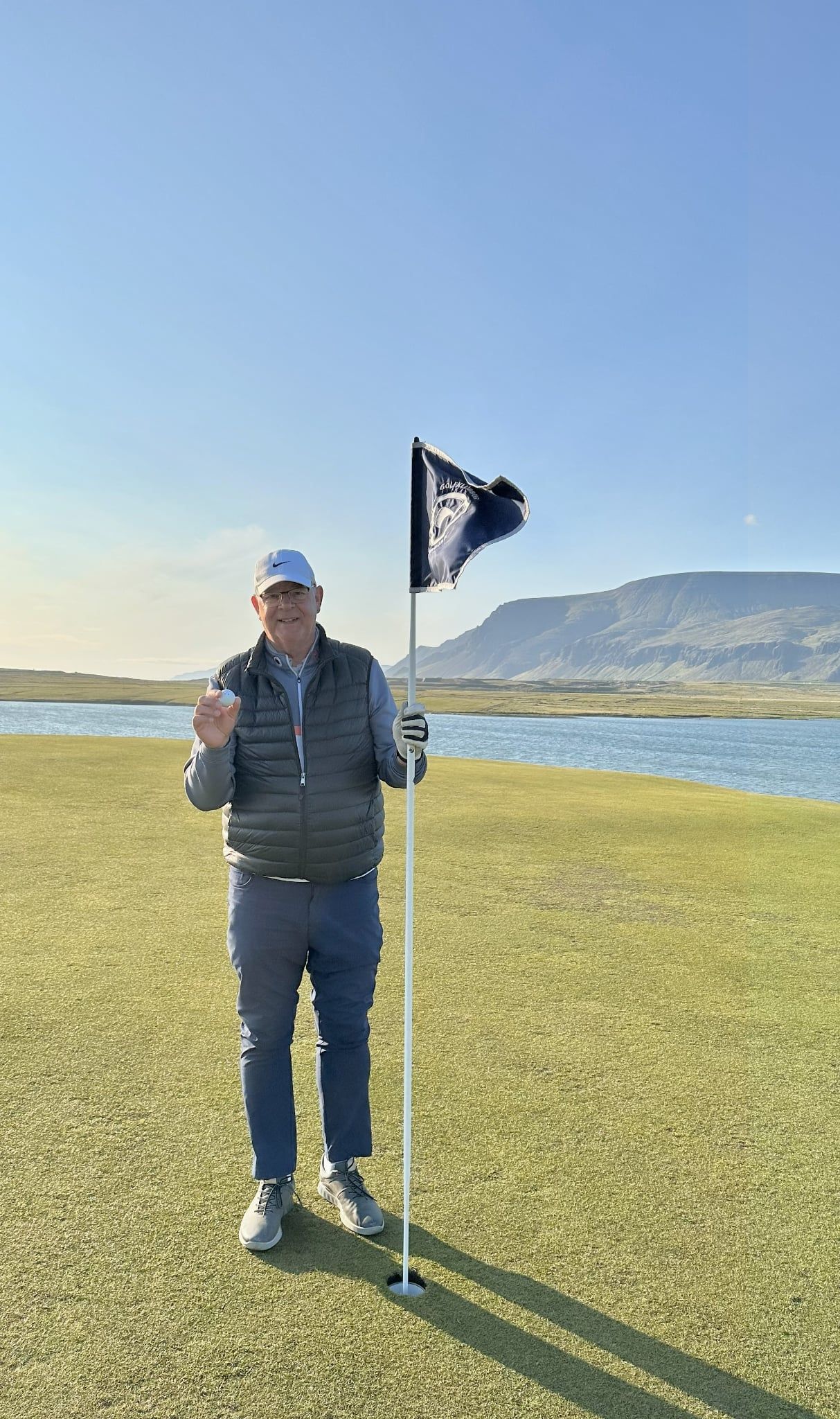 Já ég náði þeim áfanga í júlí 2023. Það var á 7. holu á Hlíðavelli. Pinninn var vinstra megin framarlega og ég sló með 9 járni. Ég hélt að þetta væri allt of stutt á meðan kúlan var í loftinu en svo lenti hún meter frá, hoppaði tvisvar og fór svo ofan í. Ég held að fagnaðarlætin hafi komið fram á jarðskjálftamælum.