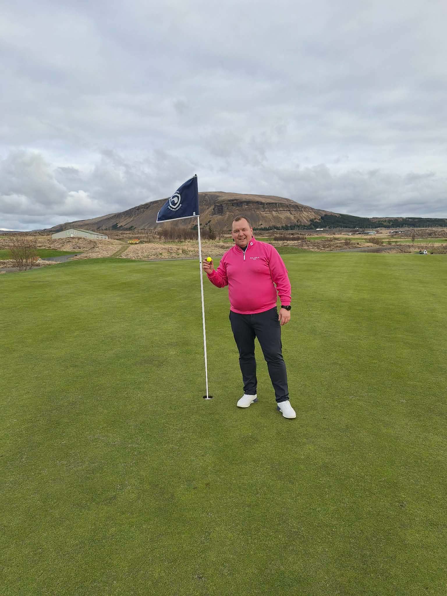 Mér er líka minnistætt svipurinn á Ása Jóns vini mínum þegar ég fór holu í höggi. Eftir öskrin og lætin í strákunum þá henti ég kylfunni frá mér og hljóp í áttina að Ása og gerði mig líklegan að hoppa í fangið á honum. En um leið og ég sá svipinn á honum sem lýsti sér þannig að þetta væri líklega að fara að koma honum í langt veikindaleyfi þá snar stoppaði ég. Frekar skrítið þar sem að ég er ekkert eðlilega íþróttamannslega vaxinn og holdgerfingur heilbrigðs matarræðis.